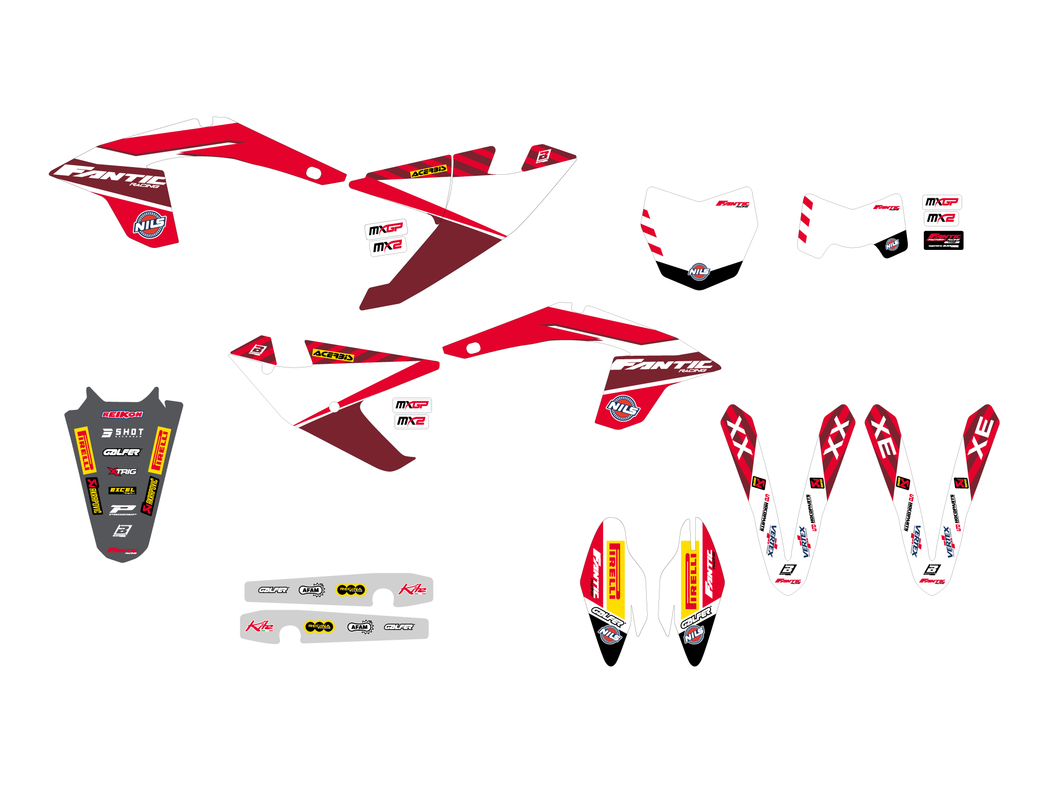 Each kit includes all the main parts: radiator shrouds, fenders, airboxes, number tables, swingarm.