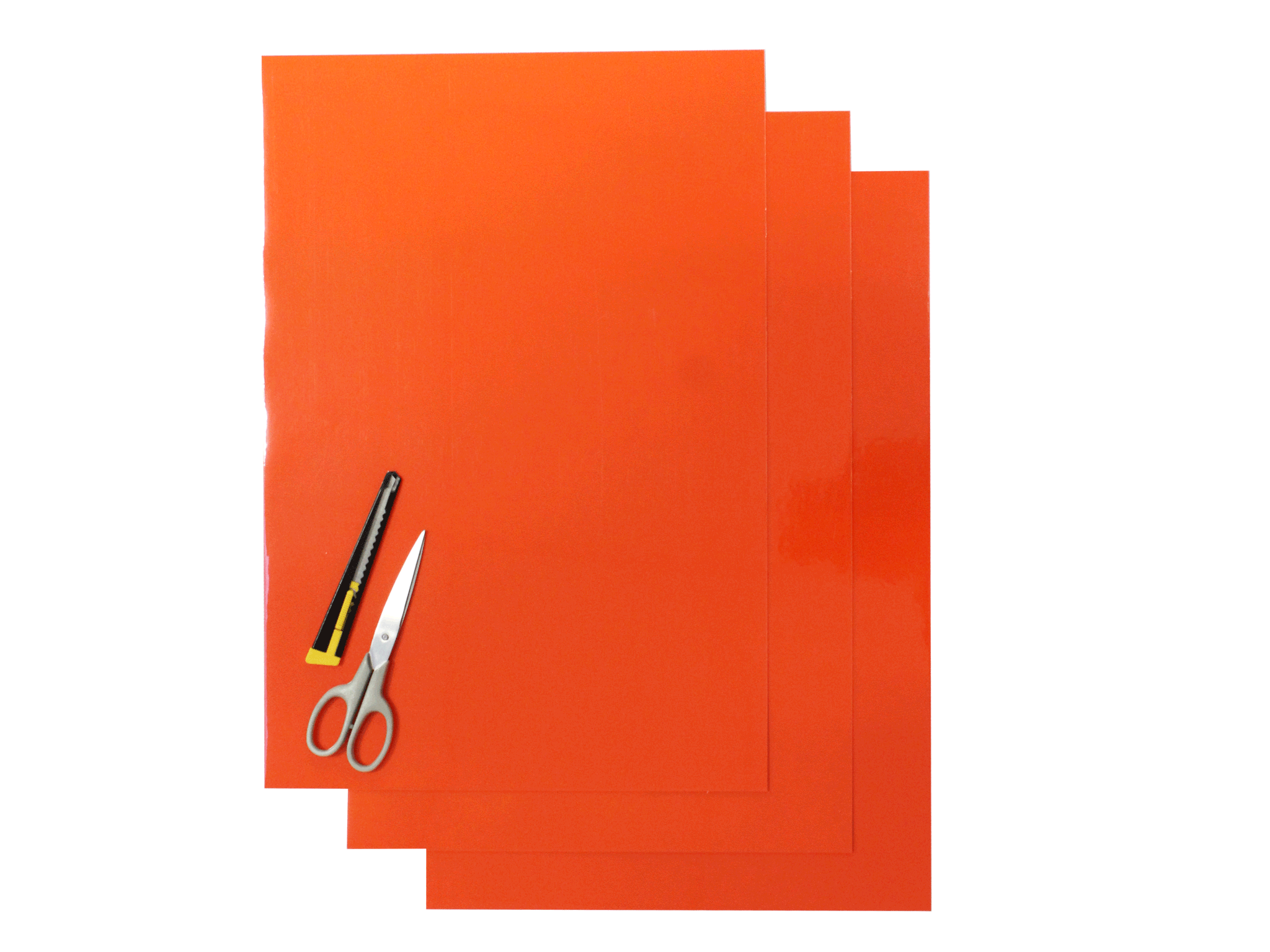 The kit is composed of three colored sheets size 47X33 cm, made of extra resistant crystall material (thickness 0,5 mm), provided with a strong self adhesive on the back, suitable to be applied on plastics and on most metals. Easy to cut and adaptable to various surfaces.
