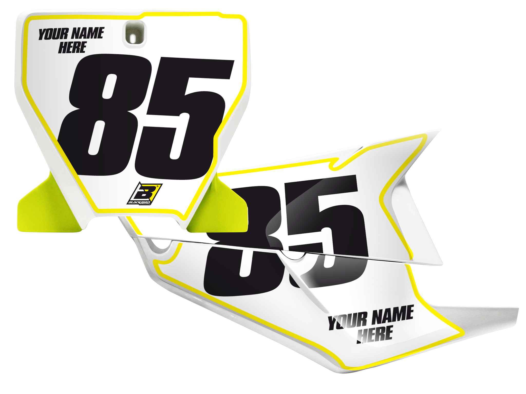 Las tablas numeradas Blackbird Racing están hechas de PVC y plásticos de alta resistencia, diseñados para soportar golpes, barro y lavados frecuentes sin descolorarse.