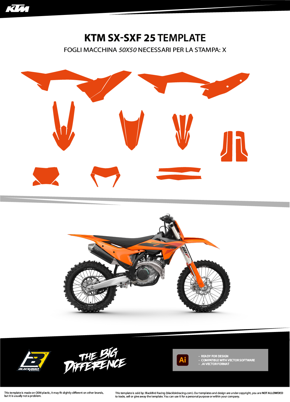Ogni kit include tutte le parti principali: convogliatori, parafanghi, airbox, tabelle, forcellone.