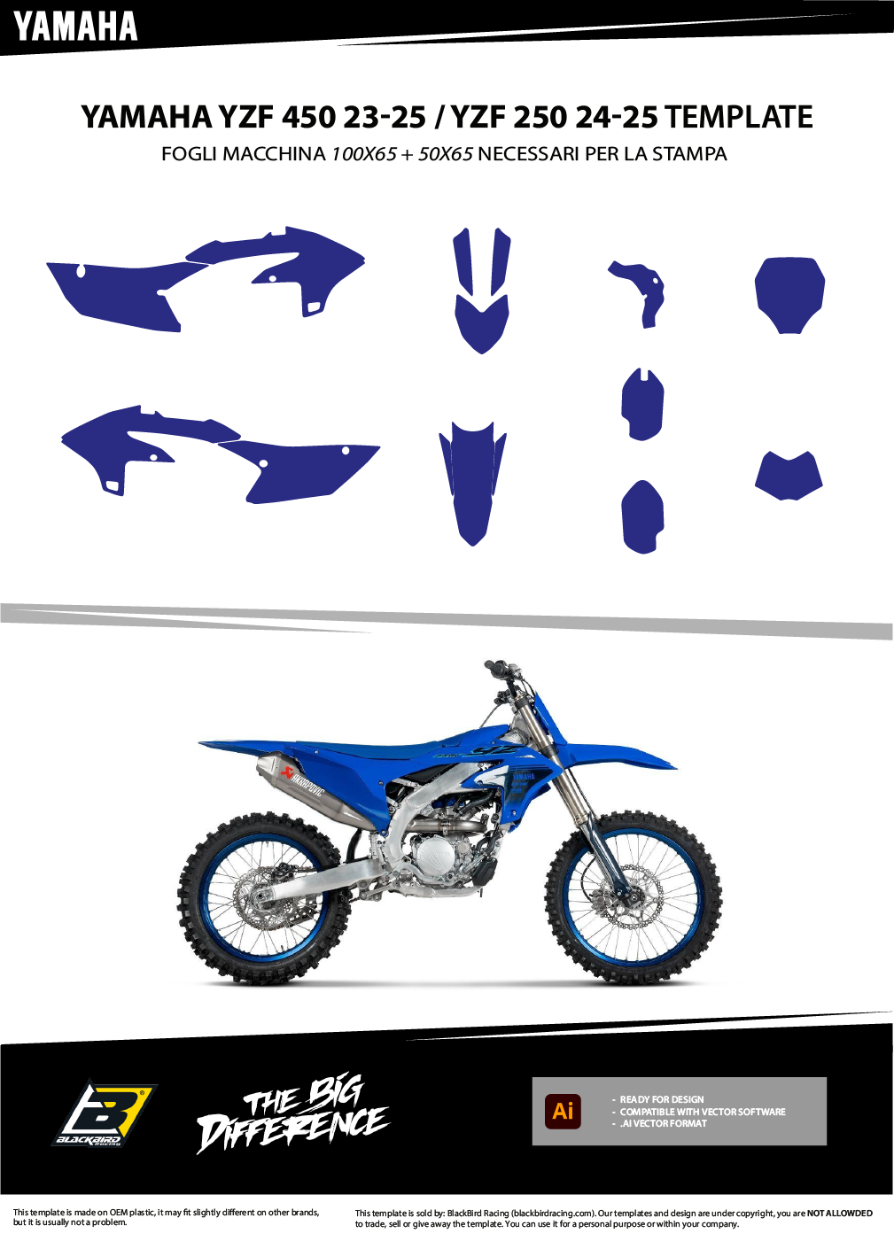 Ogni kit include tutte le parti principali: convogliatori, parafanghi, airbox, tabelle, forcellone.