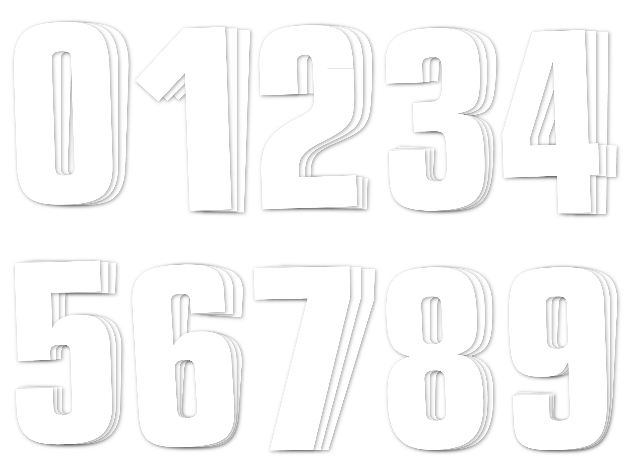 Kit 3 pz per Numeri Gara Bianco Serie 0-9 PVC