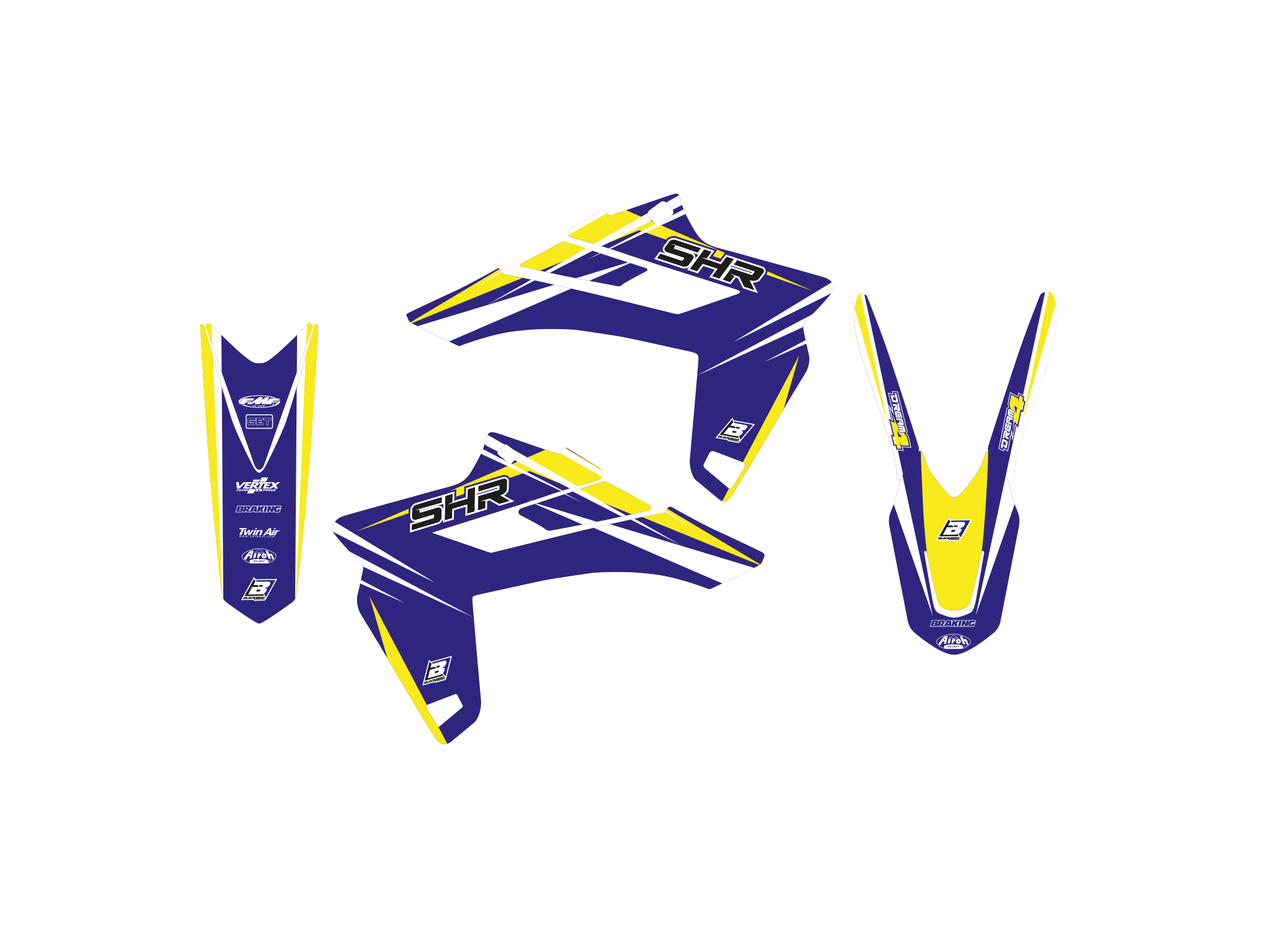 Ogni kit include tutte le parti principali: convogliatori, parafanghi, airbox, tabelle, forcellone.
