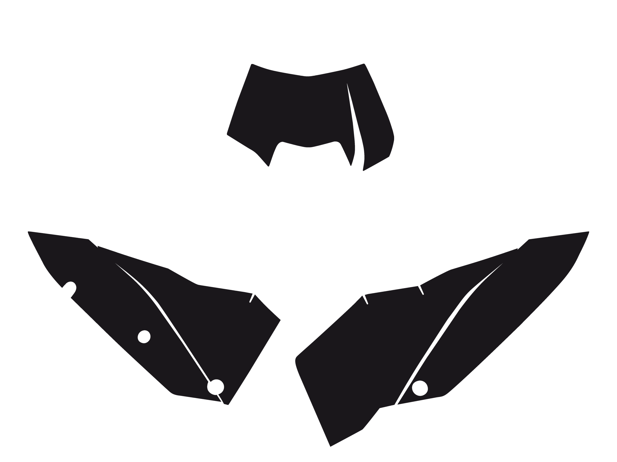 Le grafiche adesive per motocross, enduro, motard, trial sono realizzate con materiali molto performanti e di ottima qualità. Il crystall utilizzato è spesso 0,5 mm, mentre l'adesivo è stato appositamente studiato per l'applicazione nel settore off-road ed ha un collante molto forte e resistente nel tempo. La stampa è serigrafica ed utilizza inchiostri resistenti e brillanti. Per un risultato ottimale durante l'applicazione bisogna sempre scaldare l'adesivo con un fon facendo una leggera pressione su di esso. Su questo tipo di materiali non vanno usati saponi o solventi: bisogna solamente pulire bene la superficie con un prodotto secco. Per le istruzioni di montaggio consultare il video sulla homepage del sito.