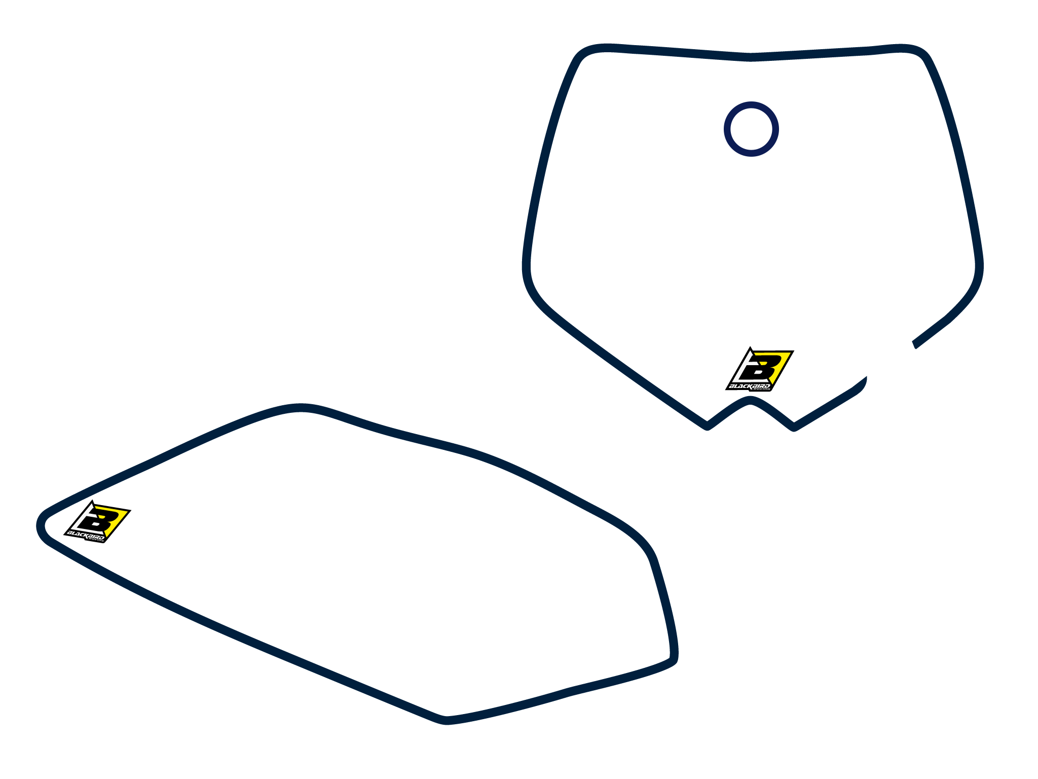Le tabelle portanumero Blackbird Racing sono realizzate in PVC e materiali plastici ad alta resistenza, progettati per sopportare urti, fango e lavaggi frequenti senza scolorire.