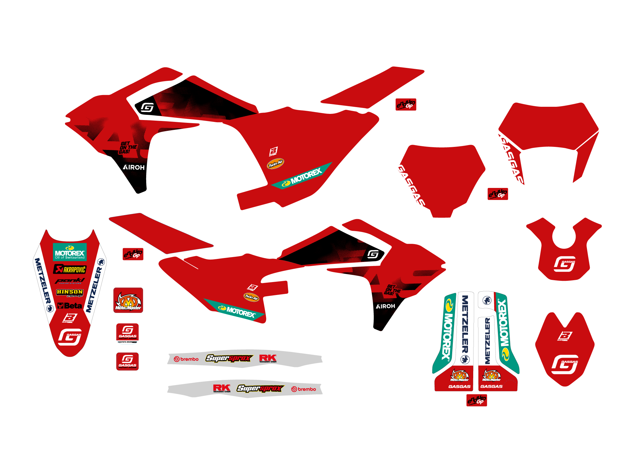 Ogni kit include tutte le parti principali: convogliatori, parafanghi, airbox, tabelle, forcellone.
