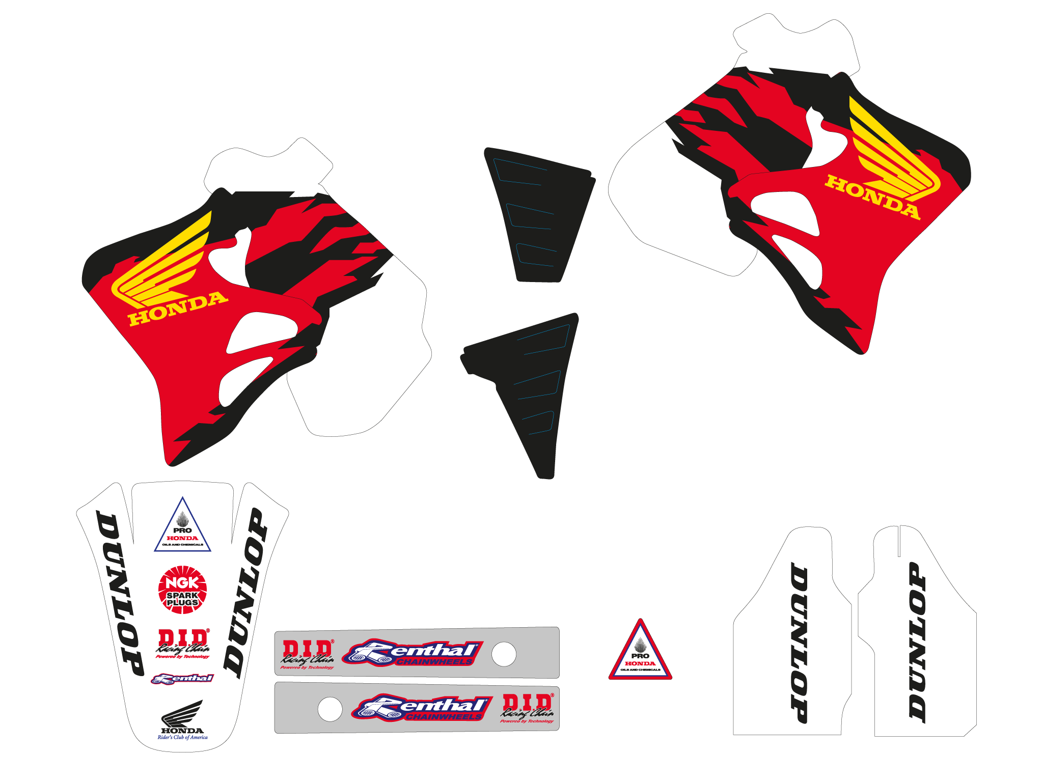 Ogni kit include tutte le parti principali: convogliatori, parafanghi, airbox, tabelle, forcellone.