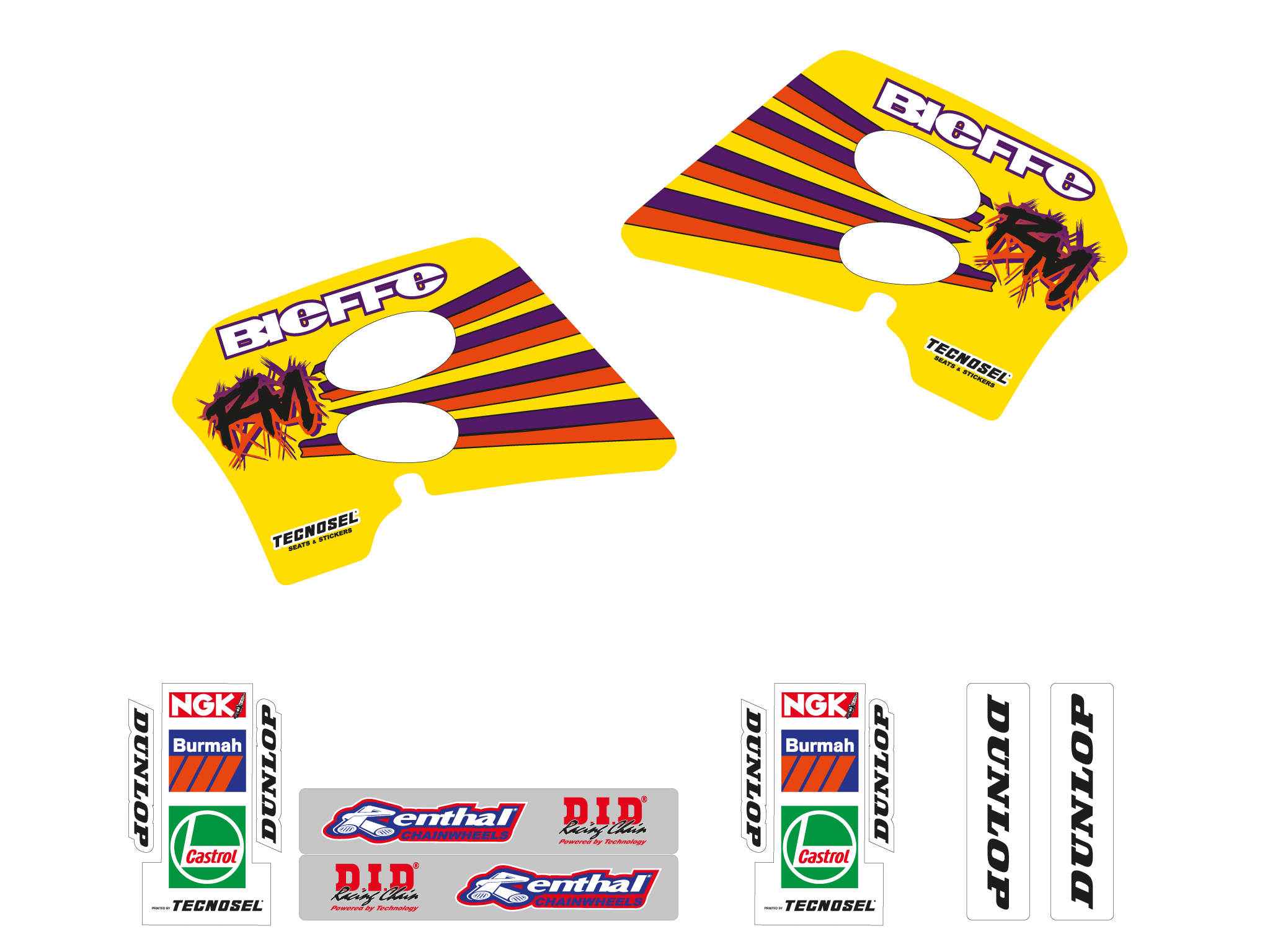 Ogni kit include tutte le parti principali: convogliatori, parafanghi, airbox, tabelle, forcellone.