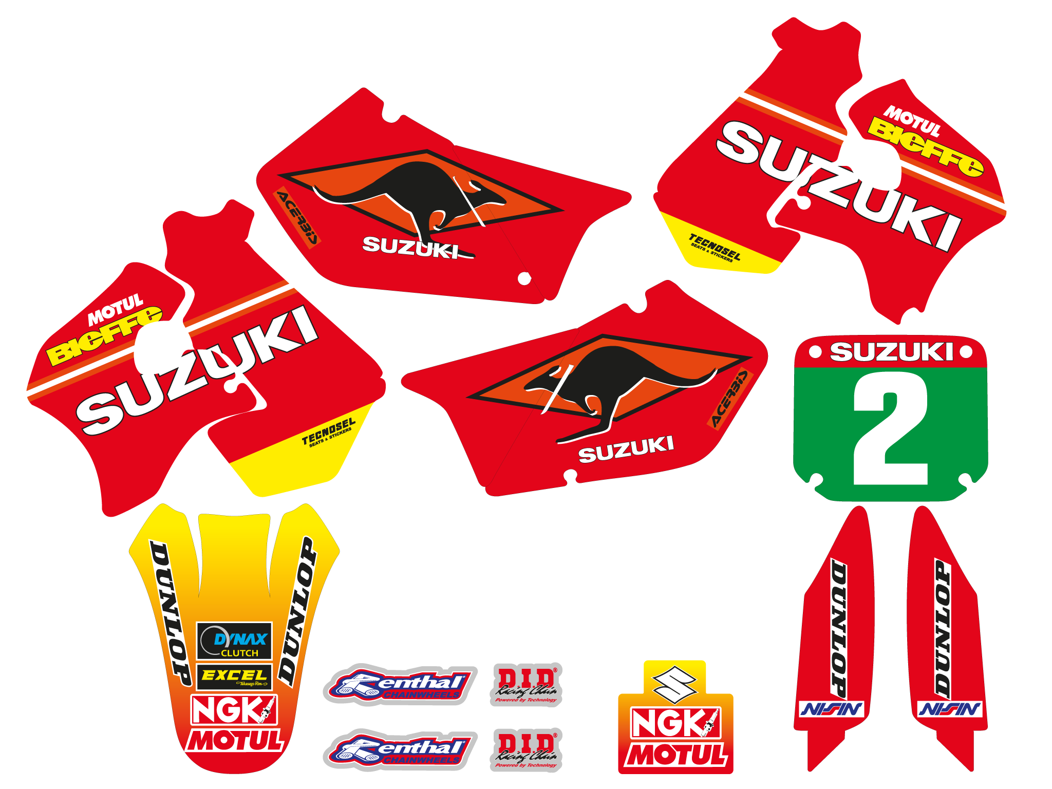 Ogni kit include tutte le parti principali: convogliatori, parafanghi, airbox, tabelle, forcellone.