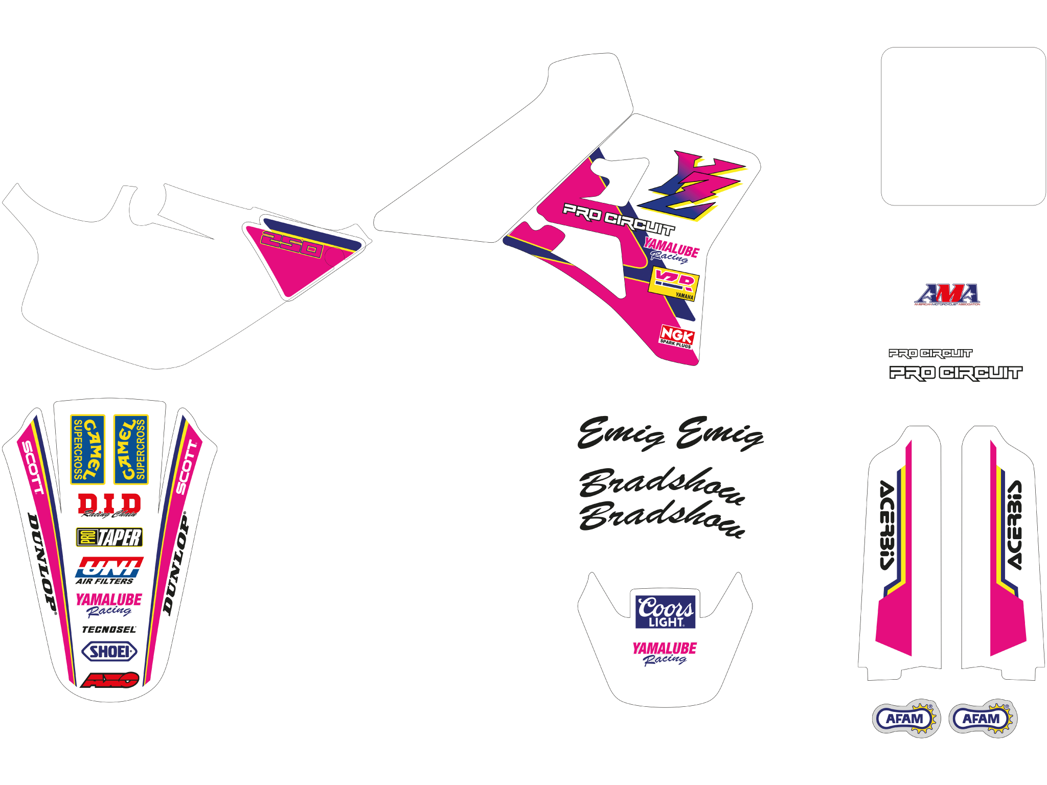 Ogni kit include tutte le parti principali: convogliatori, parafanghi, airbox, tabelle, forcellone.