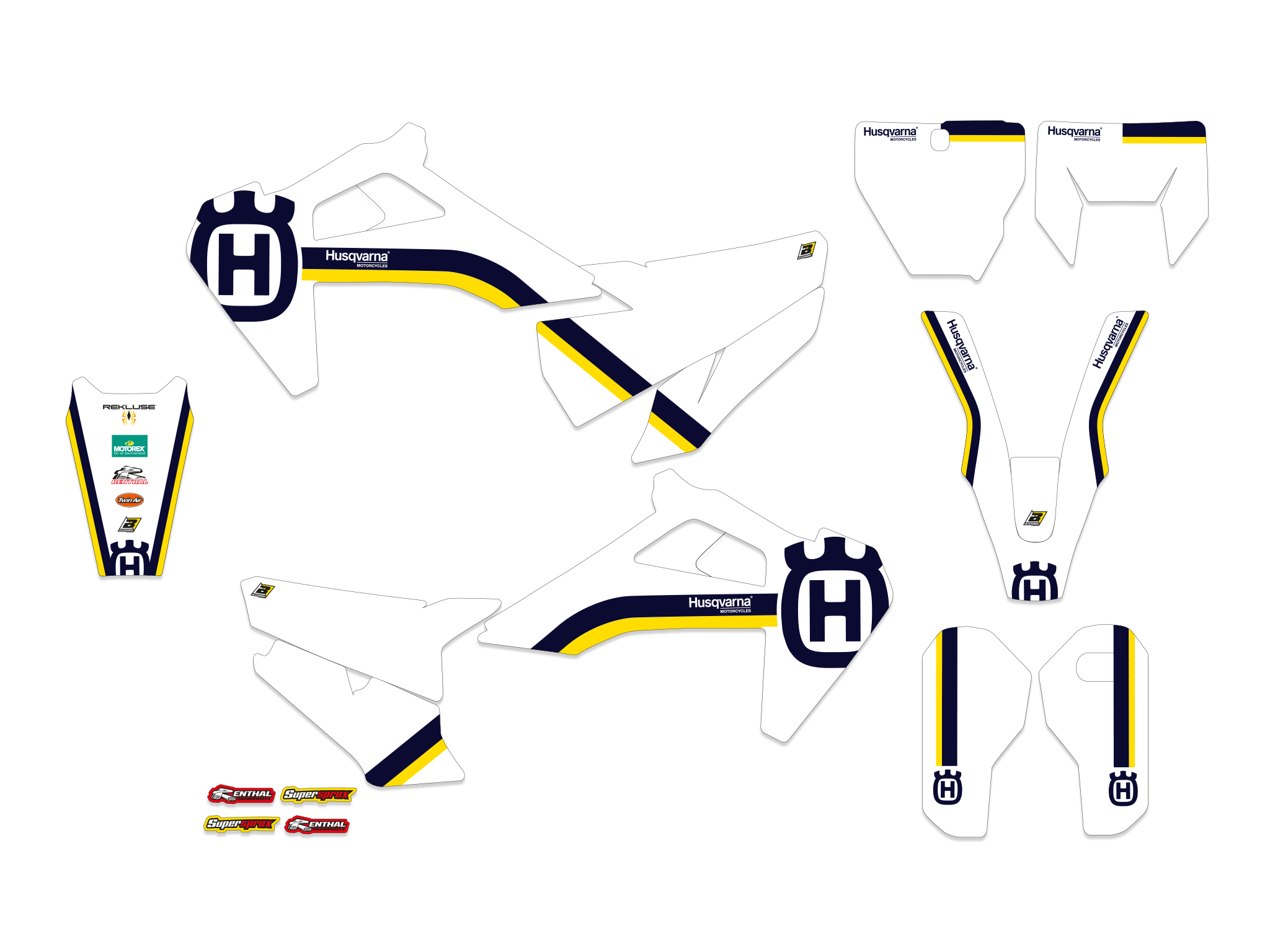 Ogni kit include tutte le parti principali: convogliatori, parafanghi, airbox, tabelle, forcellone.